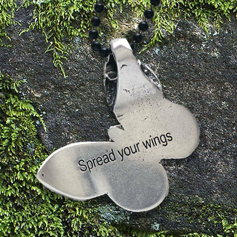 Celtic Butterfly Pendant with black 24 inch steel chain made in USA